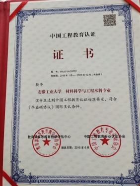 专业,标志专业办学水平与国际一流工程教育水平接轨。专业具有“本-硕-博”三位一体的培养体系,是支撑安徽省材料科学“高峰学科”建设、冲击世界一流学科的重要力量。