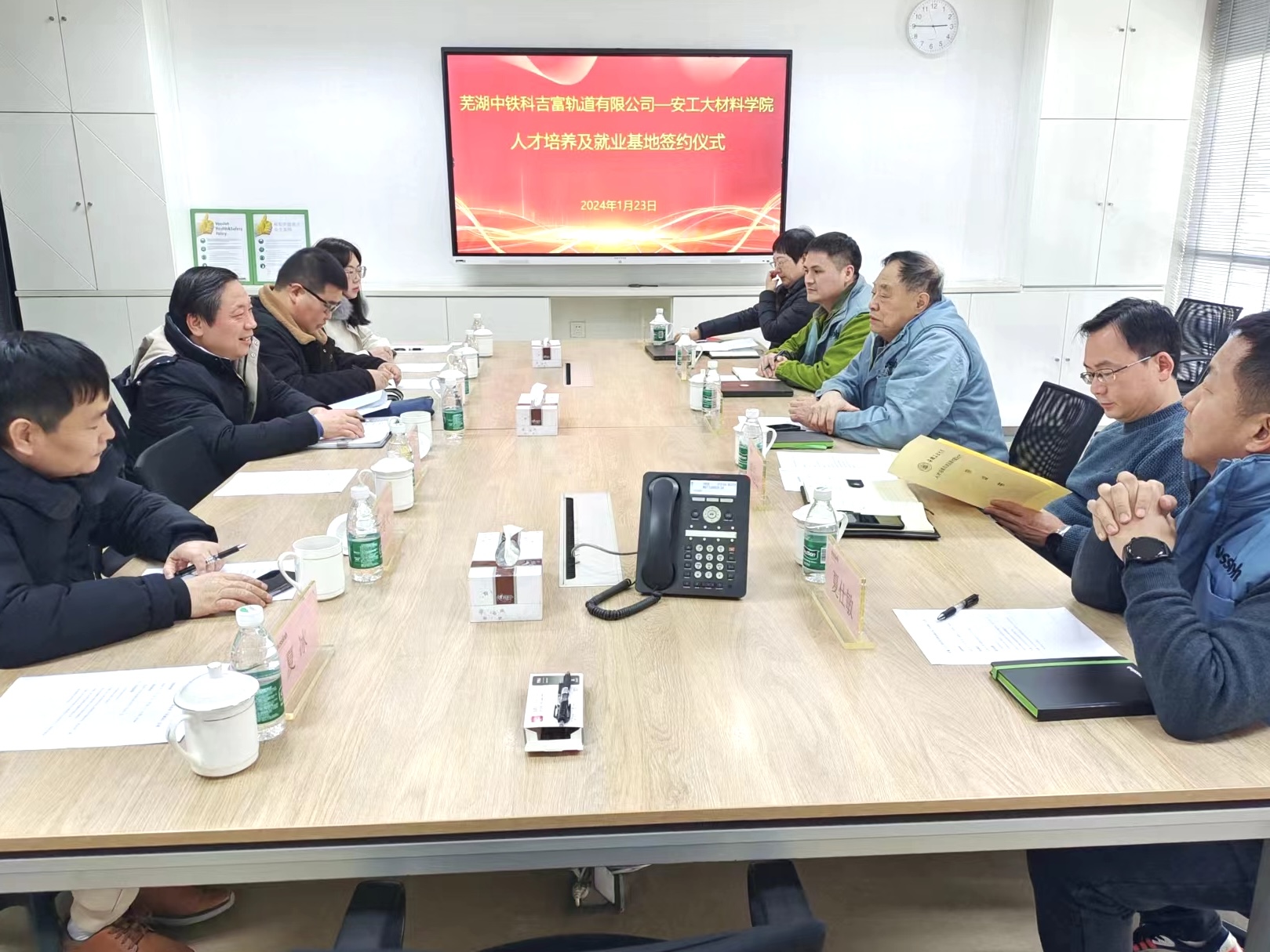 芜湖中铁科吉富轨道有限公司副总经理曹宗石、钱世山以及技术部、人事部、设计部负责同志,芜湖信德热处理有限公司总经理夏其月分别于汪盛颜一行进行了座谈交流。会上,两家企业分别从文化理念、发展历程、建设规模、未来发展方向以及人才需求、技术难题等方面的情况进行了介绍。汪盛颜向两家企业介绍了学校情况,重点介绍了近年来台湾A片 在学科专业建设、产学研合作、科技成果转化、人才培养等方面取得的突出成绩。校企双方希望以此次访企拓岗为契机,在人才培养、产学研合作等方面建立常态化交流互动机制。