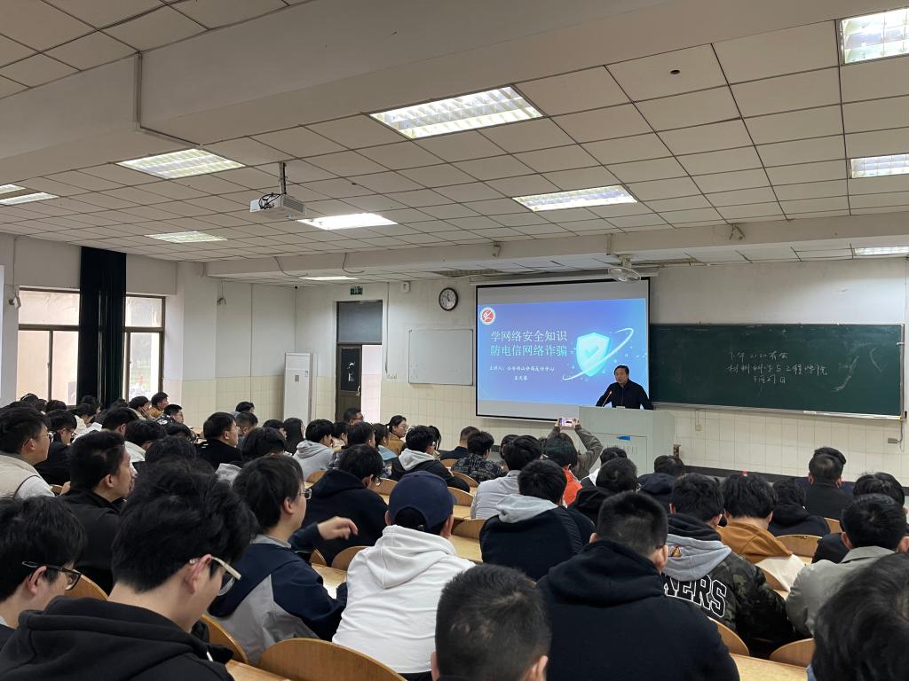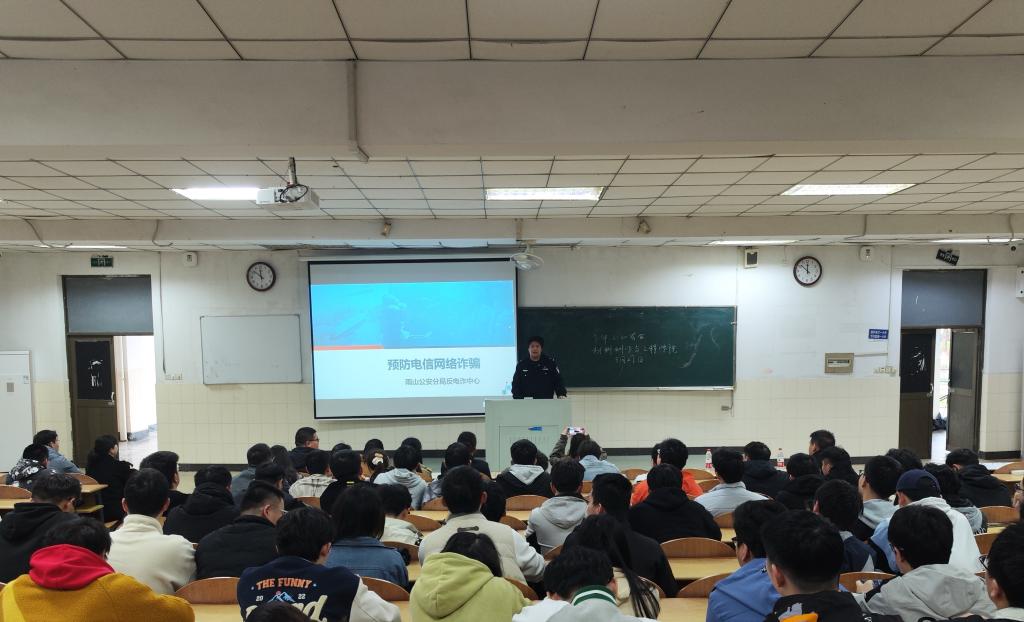 在秀山校区东教一阶101举行“学网络安全知识、防电信网络诈骗”专场活动,活动邀请了马鞍山市公安雨山分局反诈中心警官王天睿主讲。台湾A片