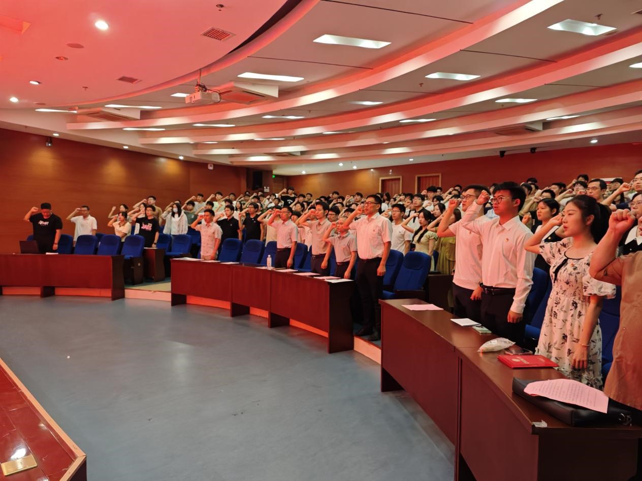 大会在庄严的《国际歌》奏响中拉开序幕。夏爱林同志宣读了“七一”表彰决定,表彰了在党建工作中表现突出的集体和个人。李永涛同志宣读了2024年上半年新党员名单,鼓励新发展的党员同志向受表彰的先进集体和先进个人学习,在学习生活中发挥先锋模范作用,以实际行动诠释共产党员的初心和使命。