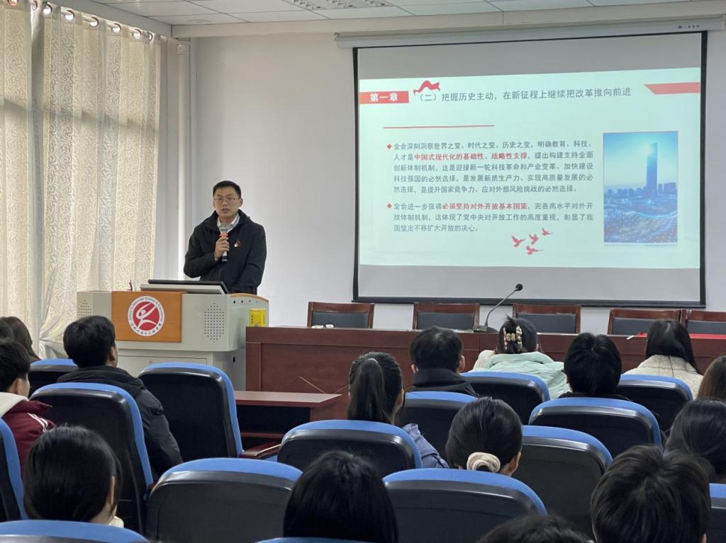 杨建从六个深刻认识入手,详细介绍习近平总书记在全会上的重要讲话精神,并指出习近平总书记的重要讲话为新时代全面深化改革提供了根本遵循和行动指南,广大青年要深入学习领会讲话精神,切实把思想和行动统一到党中央的决策部署上来。