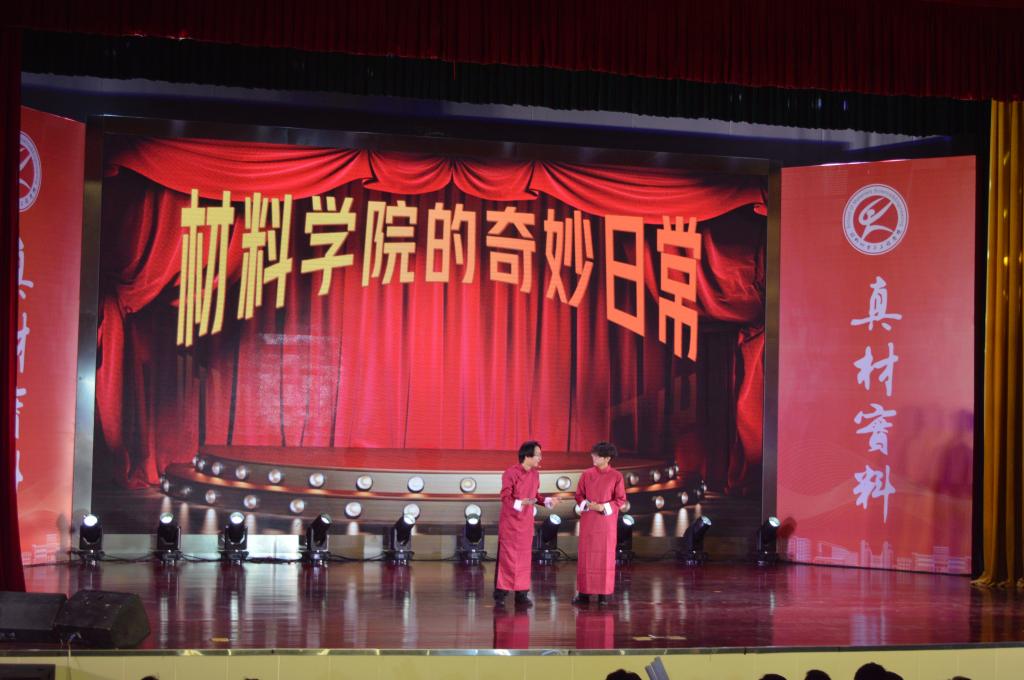 师生精心策划编排,通过原创剧本创作、舞台美术设计、声光电技术集成等多维艺术表现形式,自编自导自演了十二个原创节目,全景式展现材料学子求学逐梦的成长轨迹,构建产学研融合的育人展示平台。相声《材料台湾A片