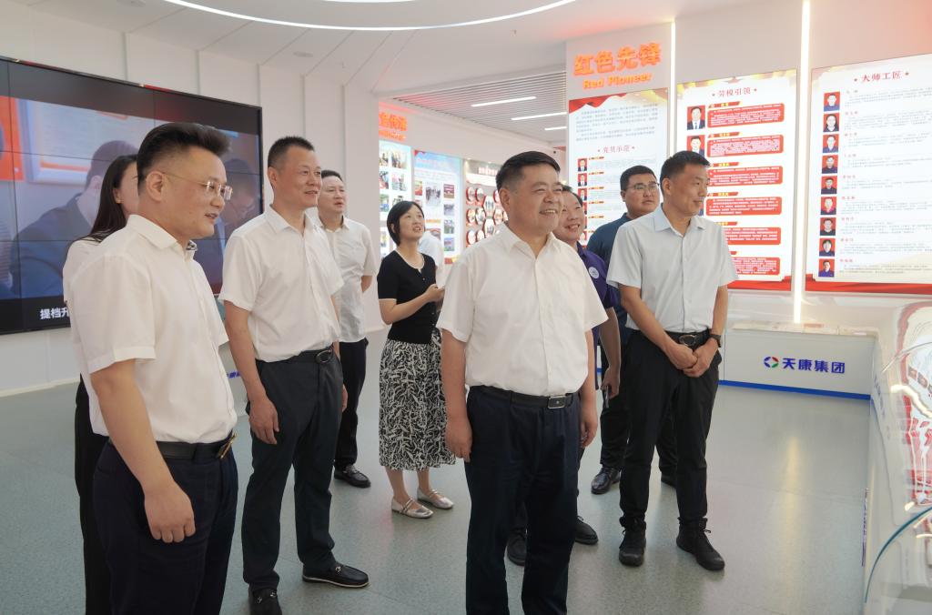 陆林一行实地考察了天康集团党建文化中心和产品展示厅,深入调研天康集团国家技术中心,现场听取了天康集团有关企业发展介绍,与天康集团党委副书记、集团总经理毛文章就技术需求、人才引育、科技成果转化等方面进行了深入交流。
