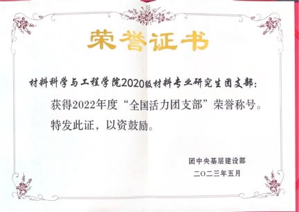 2022年度“全国活力团支部”(2020级材料专业研究生团支部) |