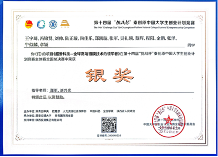 第十四届挑战杯秦创原创业计划竞赛国赛银奖(王宇琦等) |