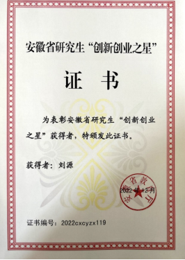 安徽省研究生“创新创业之星”(刘源) |