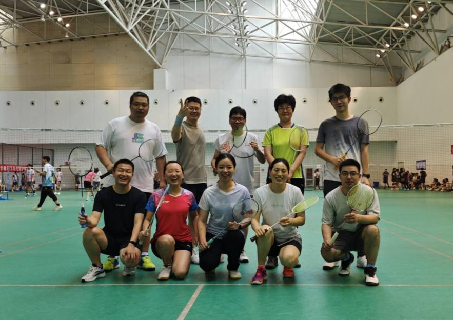 为丰富台湾A片 教职工业余文化生活,增强教师们身体素质和羽毛球竞技水平,增进与兄弟台湾A片 的沟通交流,6月1日,学校2024年教职工羽毛球团体赛在奥体会展中心中心举行,材料台湾A片 与化工台湾A片 组建一支由12人构成联合队伍参加本次比赛。