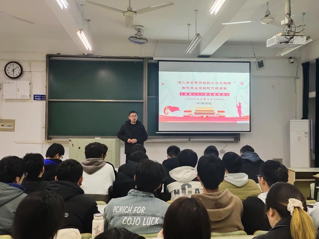 各学生班级围绕“爱国、团结、奋斗、科学、互助”关键词,通过观看视频、知识问答、感悟分享等形式,宣讲党的二十大精神。会上,各班级汇报了宿舍卫生检查情况,结合上学期学生学习过程以及期末成绩分析,对班级学生学习状况等展开分析研讨。参会领导老师们结合自身对党的二十大精神的所学所感、所思所悟,带领同学们深入学习和领会了党的二十大的重大意义,对报告中提出的新思想、新观点、新论断进行了深入解读。同学们结合时事热点、宿舍安全、思想动态、学习困惑等方面与老师们进行深入交流,老师们耐心倾听、积极回应,切实解决了同学们的问题与困惑。会后,同学们均表示受益匪浅。