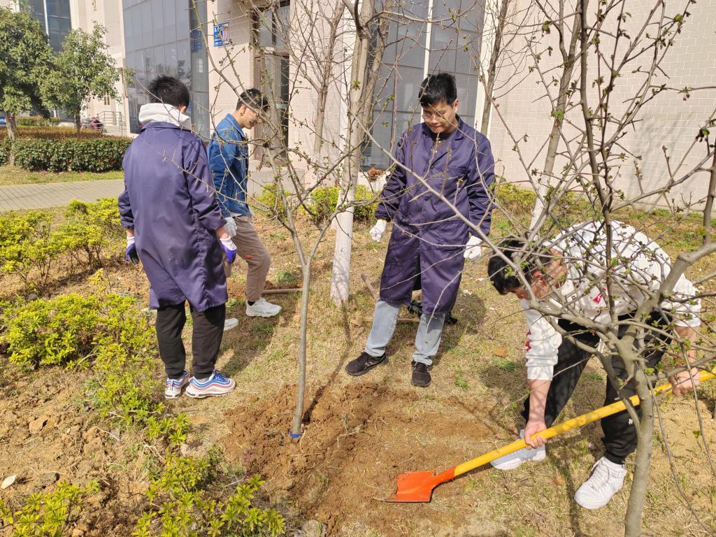 副院长赵颖虹、后勤集团副总经理唐记明、后勤集团工作人员和研究生材料科学党支部全体党员参加了植树。