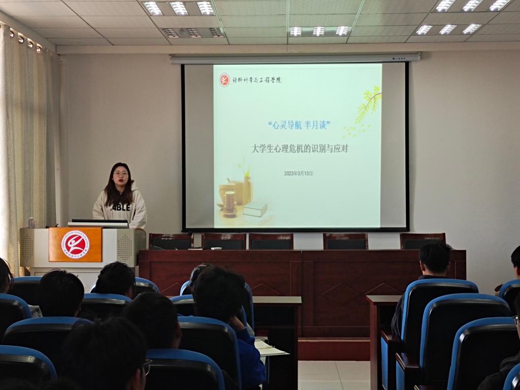 心理工作站站长王心雨主讲,各年级心理委员、主要学生干部等到场参加。