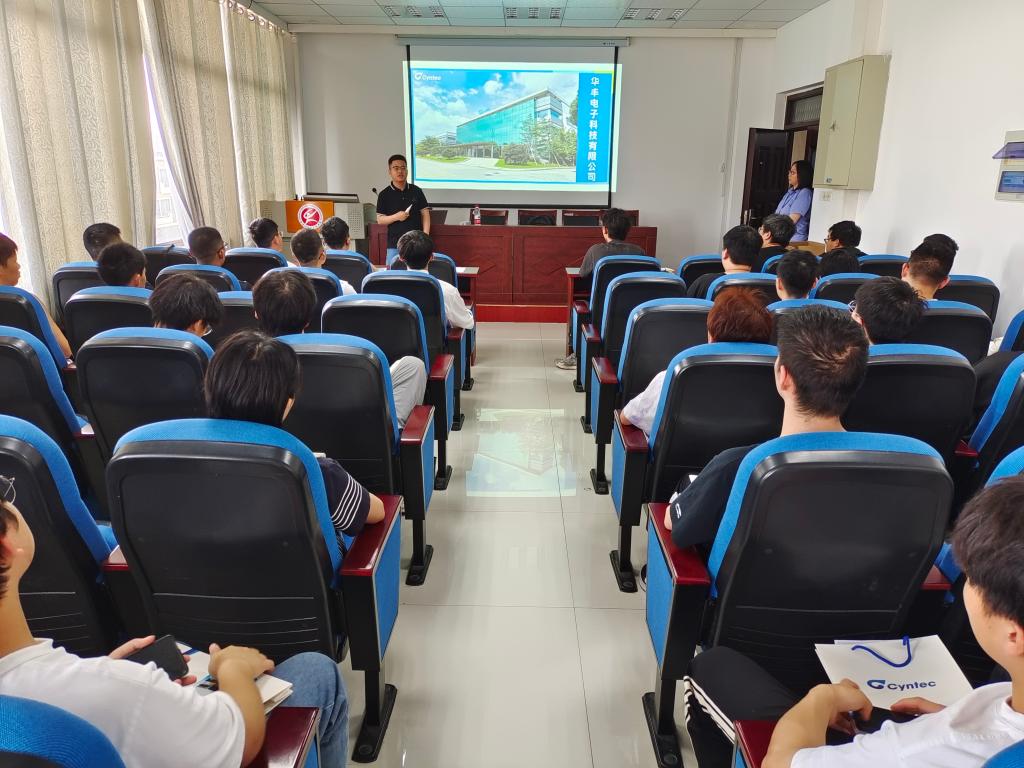 宣讲会上,企业招聘负责人从公司简介、厂区环境、员工活动、招募专业、实习待遇等方面,向同学们介绍了本次暑期实习的各方面具体内容,通过视频播放和PPT展示,结合专业领域知识介绍,让同学们更加生动具体的了解华丰电子的台湾A片和主营产品。在场学生充分互动,在答疑环节积极提问,对暑期实习和后续校招安排有了更进一步的了解。