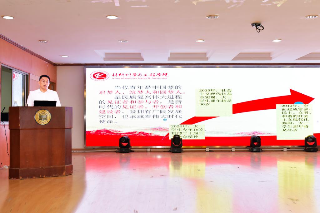 基本情况、材料专业发展前景和在国家建设中的支柱性作用,并结合自身求学经历,强调了学好专业课的重要性。他还寄语同学们珍惜大学时光,静下心,沉住气,尽快适应大学学习生活,更加独立、更加自主地解决学业的问题,面对人生的课题,更加自信、更加负责的走好自己的读书求学路、成长成才路。
