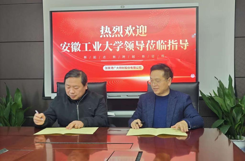 座谈结束后,柳东明向企业授予“安徽工业大学大学生就业基地”牌匾,汪盛颜为肖一军颁发“安徽工业大学就业创业领航导师”聘书。校企双方签订人才培养与就业基地建设合作协议。