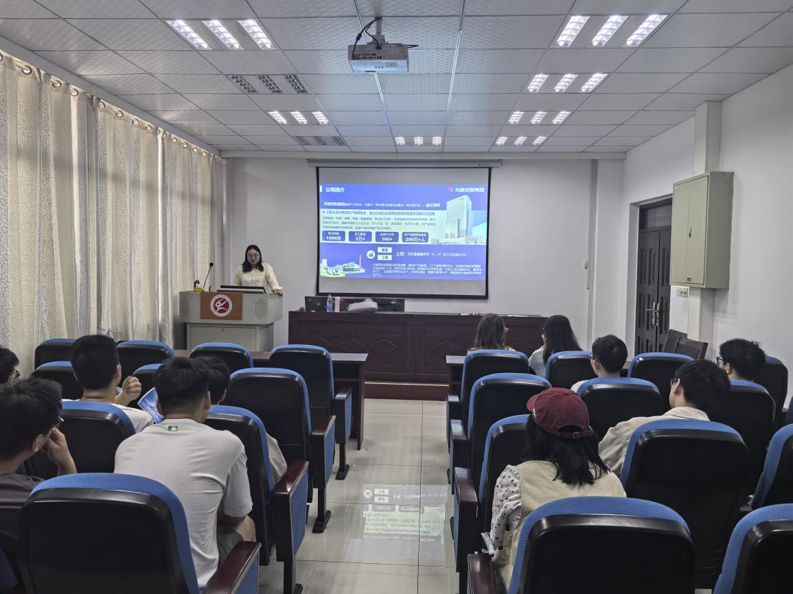 为增强宣讲活动的实效性,天能集团特别邀请了毕业于安徽工业大学的2022届优秀校友代表进行了分享。校友结合自身成长经历,详细讲述了从校园到职场的转型经验,并分享了在天能集团的工作感悟。校友的现身说法不仅拉近了企业与学生的距离,更激发了同学们的求职信心与热情。