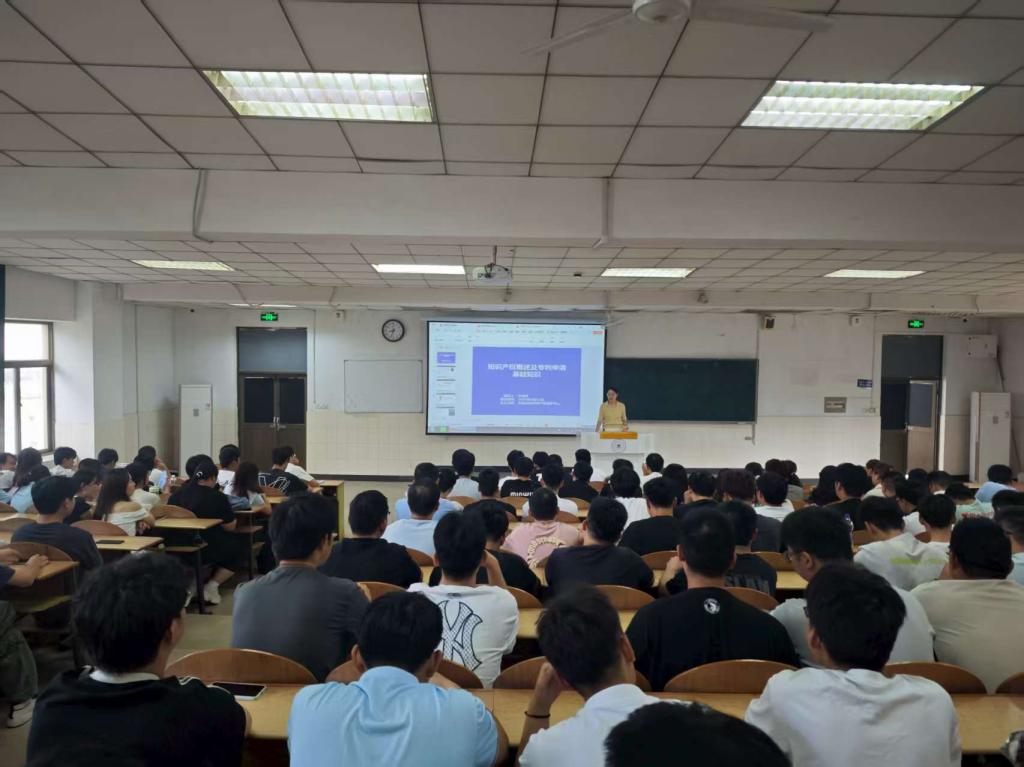 讲座中,于婉萍围绕“知识产权概述及专利申请基础知识”主题,从三个维度展开深入讲解。她首先系统介绍了知识产权的定义、法律特征及主要类型,帮助新生建立对知识产权的整体认知;重点讲解了专利的基本概念、申请流程、撰写要点及常见问题,结合案例分析了专利保护在科研创新中的重要性;最后,她还展望了知识产权行业的发展趋势,鼓励同学们将知识产权意识融入未来的学术研究与职业规划。